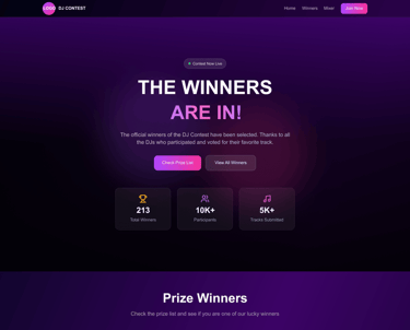 Redesigned this contest website to clearly highlight the official winners of the DJ Contest while improving content hierarchy, readability, and overall visual impact. The updated design ensures that announcements feel celebratory and professional, while also acknowledging and thanking all participating DJs and voters through a more engaging and user-friendly layout.