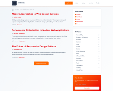 Redesigned this web development trends platform to present hot and emerging topics—such as performance optimization—in a clearer, more engaging, and developer-focused manner. The refreshed layout improves content structure and readability, making it easier for users to explore practical case studies, identify performance bottlenecks, and learn proven techniques for enhancing speed and user experience in modern web applications.
