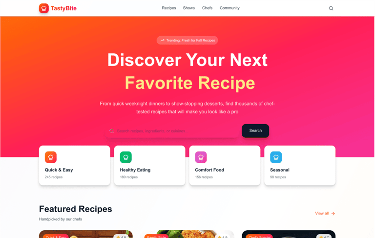 Redesigned this recipe website to deliver a more engaging, modern, and user-friendly experience, making it easy to explore everything from quick weeknight dinners to show-stopping desserts. The new design highlights thousands of chef-tested recipes with improved visual hierarchy, intuitive navigation, and responsive layouts, ensuring users can confidently find and cook like a pro on any device.